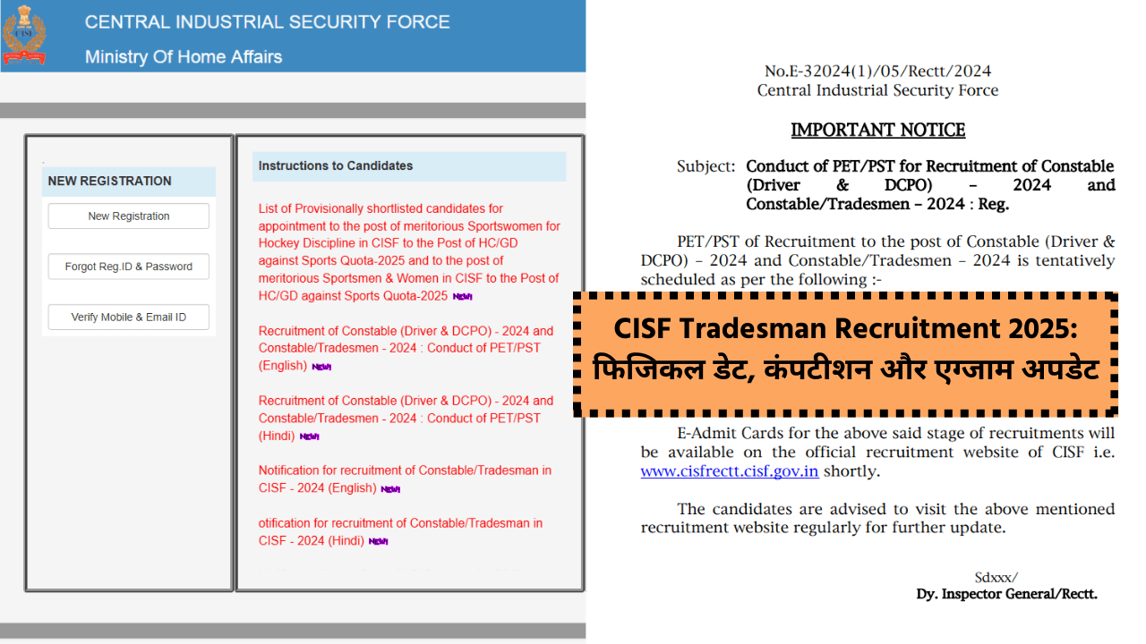 CISF Constable Tradesman 2025: Vacancy, Physical Test, Trade Test और Written Exam अपडेट