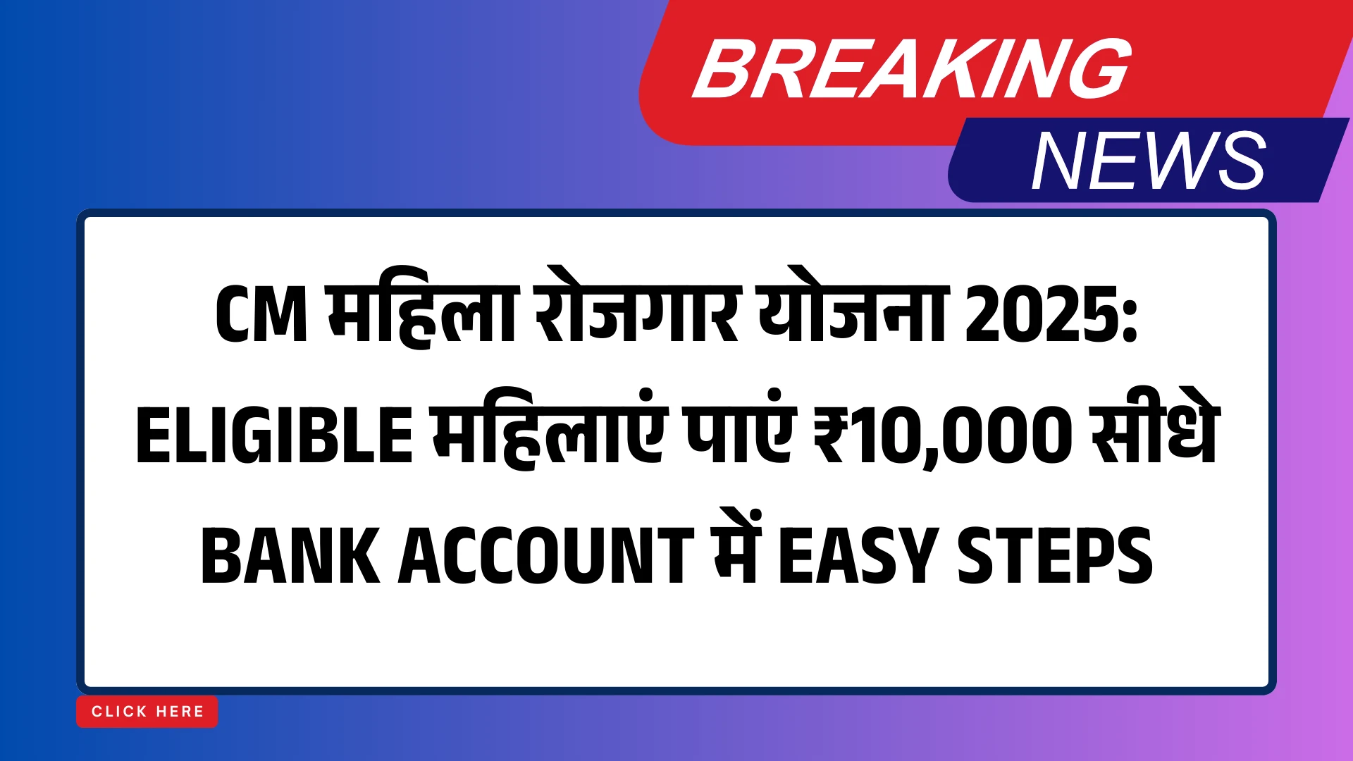 CM महिला रोजगार योजना 2025: Eligible महिलाएं पाएं ₹10,000 सीधे Bank Account में Easy Steps