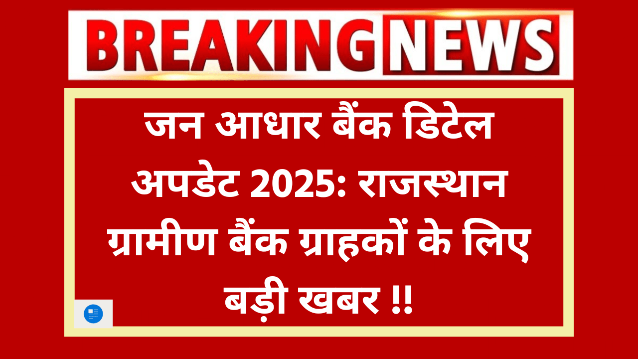 जन आधार बैंक डिटेल अपडेट 2025 – राजस्थान ग्रामीण बैंक में खाता रखने वाले लोगों के लिए एक अहम सूचना जारी हुई है। अब आपके बैंक खाते की जानकारी सीधे Bank की ओर से जन आधार पोर्टल में अपडेट की जाएगी।