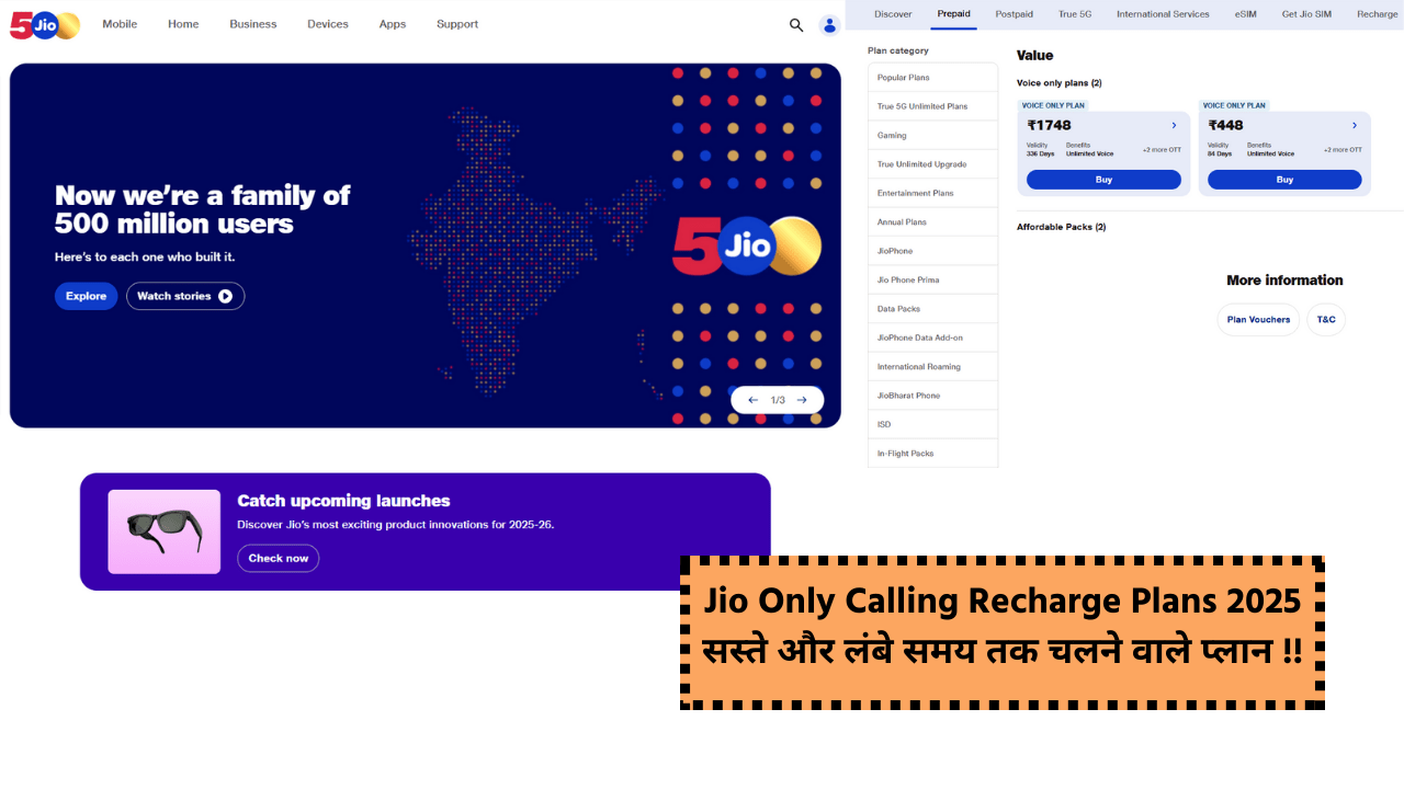 Jio का धमाकेदार Only Calling Plan: ₹1748 और ₹448 में Unlimited Calls, बिना Data के मज़ा